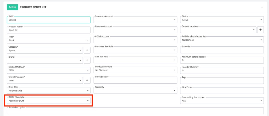 You will need the Inventory → Products and families and Inventory → Product - Bill of materialspermissions in order to add and edit the BOM for a product and enable/disable auto-assembly.