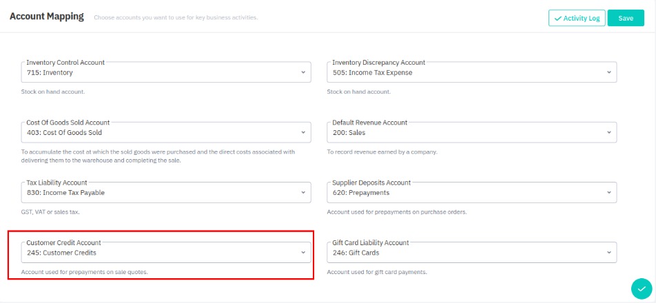 Before you can use Customer Credits, you will need an account to hold them. It must be a liability account and accept payments (for Xero and Cin7 Core accounting). Xero and QuickBooks users can create accounts through their accounting system. If you use Cin7 Core accounting, go to Settings → Reference books → Financials → Chart of Accounts. For more information about account settings and creating accounts, see Accounts and Chart of Accounts.