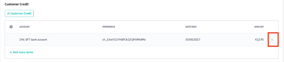 Creating customer credits through the Receive Money feature is useful when a customer has made a prepayment which does not relate to any particular sale, but still needs to be accounted for.