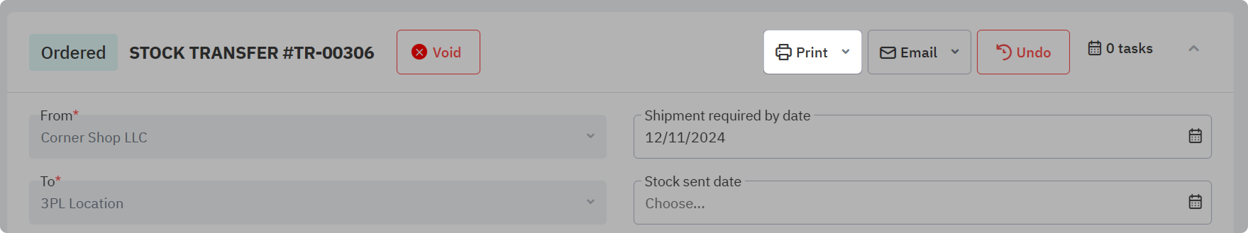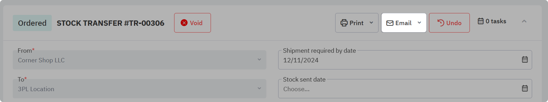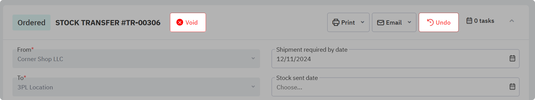 Undo or void a stock transfer