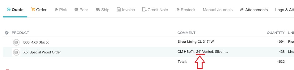 Comment field in 2 line of Quote includes "