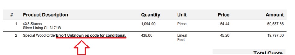 What is "Error: Error! Unknown op code for Conditional" in a document?