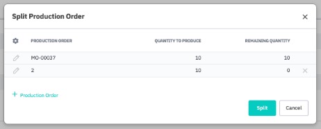 NOTE: Splitting the order at this stage creates new, independent production orders. Splitting a production order into multiple linked production runs takes place after an order has been released. See Splitting a Production Order into Production Runs for more information.