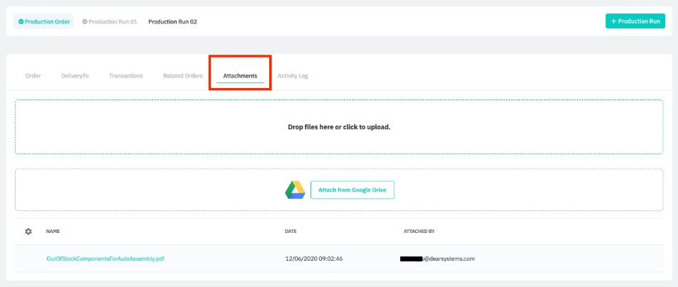 Production order/run additional attribute fields can be found in the Logs and attributes tab of your production order, and the Attributes tab of a production run.