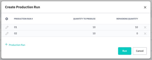 In some cases, production orders must be completed on time regardless of any external reasons for lack of components. Cin7 Core allows you to 'hard allocate' or reserve some or all of the stock components of a production run as soon as the production order has been released and split into production runs. Reservation guarantees that these exact components will be consumed by only the exact Production Run for which they are reserved, and no other task can consume these components.