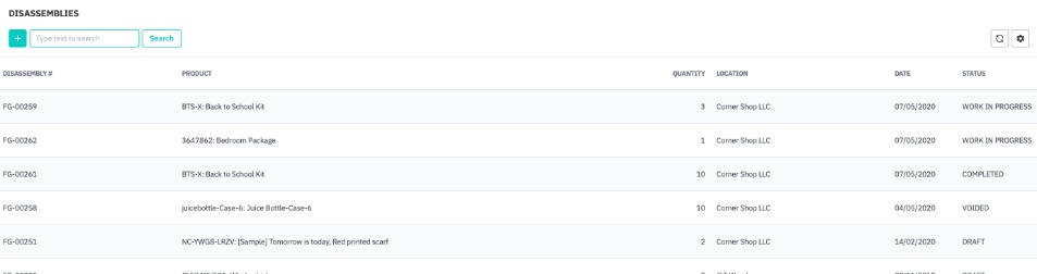 You can view all historical Disassemblies by navigating to Production → Disassemblies.