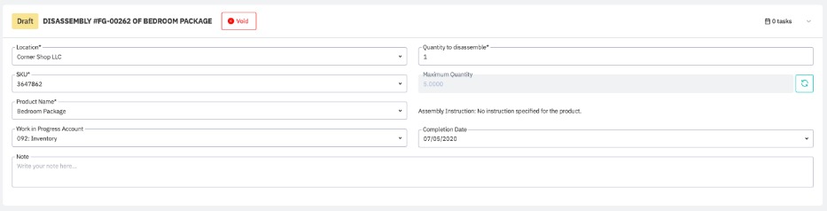 Cin7 Core does not support partial disassembly. The full quantity must always be disassembled for the task to complete.