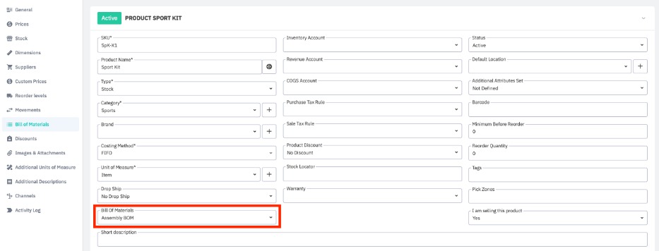 Note: For creating a product with a Bill of Materials, the component products and services must already be created in Cin7 Core.