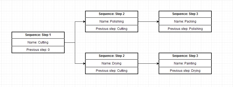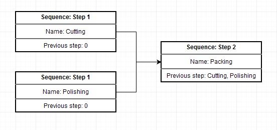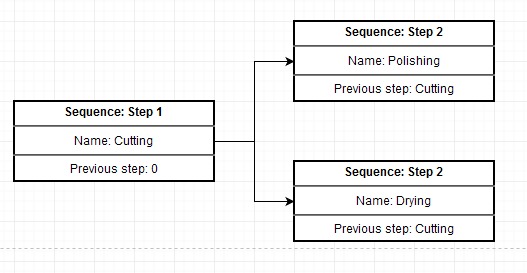 Polishing (Step 2) and Drying (Step 2) operation requires previous operation Cutting (Step 1) to be completed.