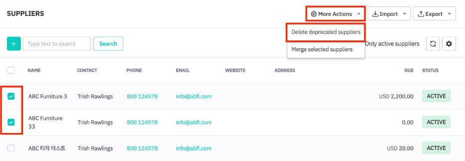 In the Status column, change all suppliers to be deprecated from ACTIVE to DEPRECATED.