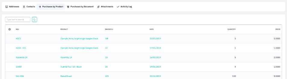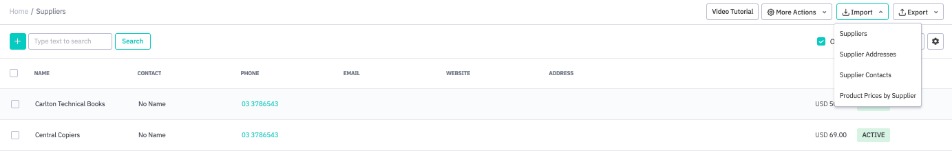 Suppliers are who you buy services and products from. In this section, you can add supplier details, supplier addresses and supplier contacts. You can also import supplier price lists for your products. Purchase history, by product or by purchase order, is also viewable from this page.