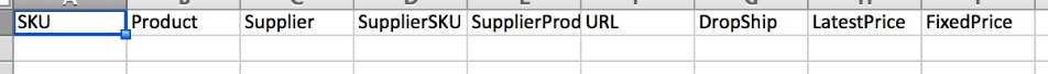 Copy your product information into the template. Make sure the information matches the column headings, which must not be changed for the import to work. Prices used here will be used in your purchase orders.