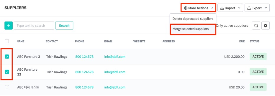 Note: Merging suppliers is not reversible. You will need to merge the same suppliers in your accounting software.