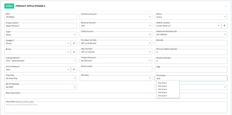 Cin7 Core allows you to assign products to one or more Pick Zones to streamline picking. When using the WMS app, you will be given the option to select Pick Zone as well as Location during picking.