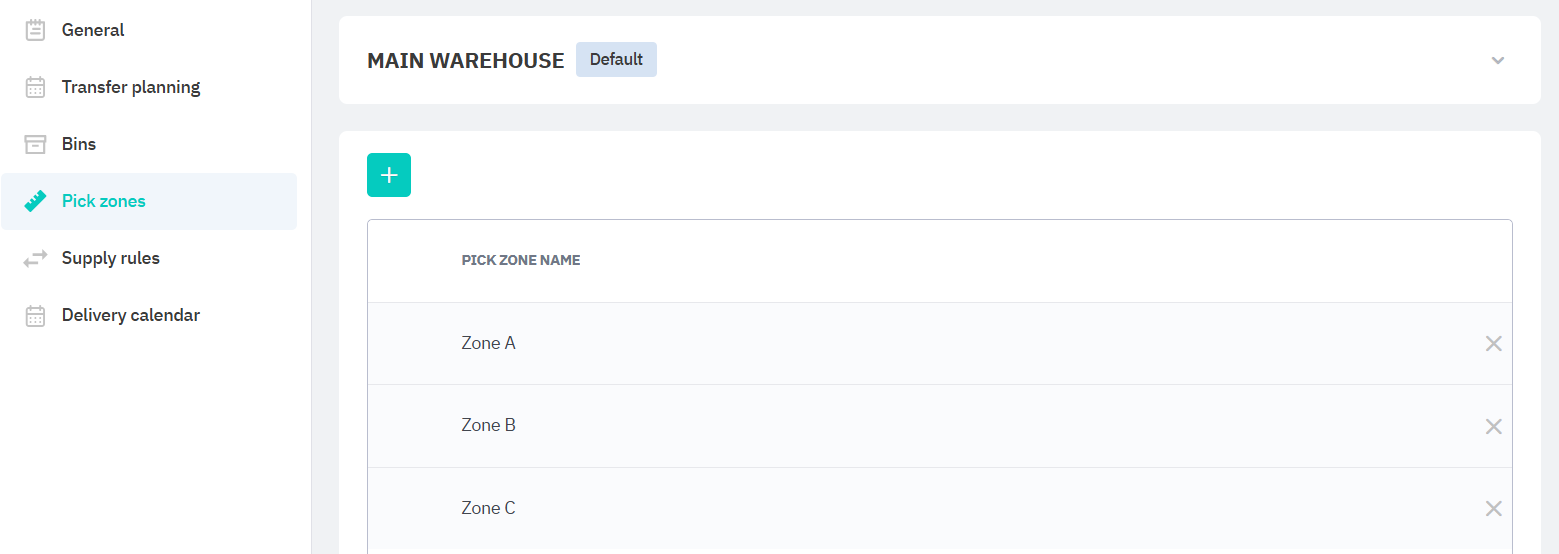 Save your changes to finish. To remove a pick zone, press the delete icon next to the pick zone line.
