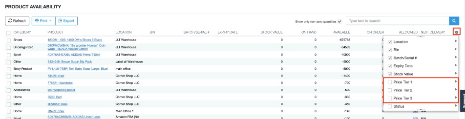 Is there a report I can do that is the exact same as the exact same as the Price list report but has the QTYs on hand, allocated and ordered in it?