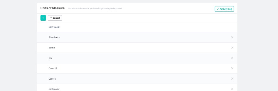 You can define units of measure you will be using to measure your products or services. When creating a Product, you can select a unit of measure for the product from this pre-specified list or create a new one.