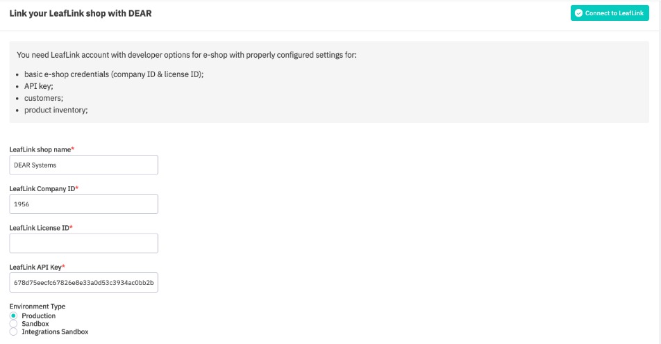 In order to setup an integration, you will need to have first registered an account as a LeafLink brand with a valid commercial license and at least one brand.