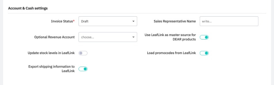 The revenue account to be used for all sales downloaded from LeafLink. This will override the settings at the product/customer level and any other account mapping.