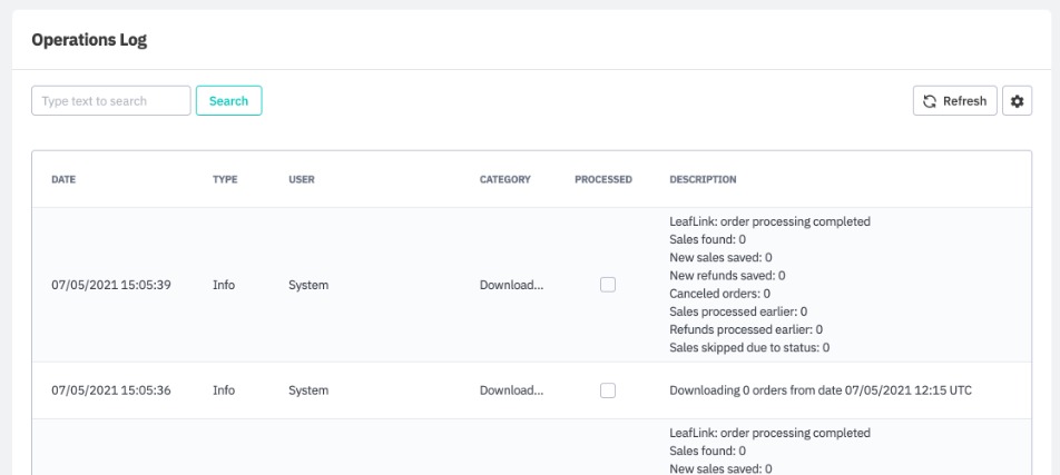 Each time the user or Cin7 Core downloads sales, the appropriate record is added to the operations log, which also contains information about results of downloading, including the count of processed, skipped or cancelled orders.