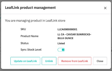 Note: Updating a product from the catalog will update stock level in LeafLink, regardless of the sync stock level setting status.