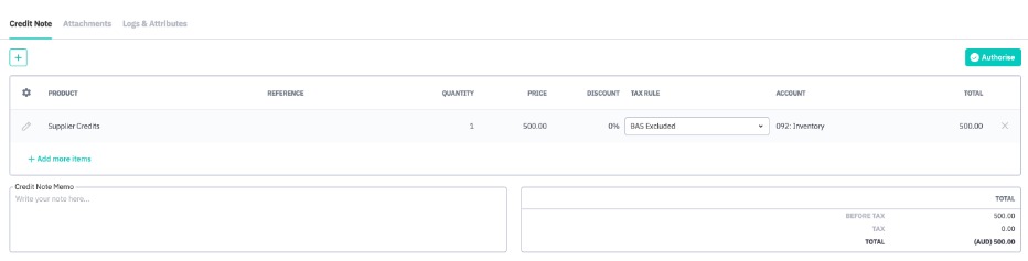 Click Authorize to process the credit note.