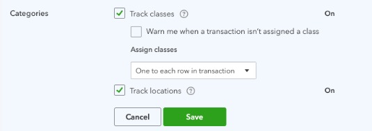 Enable class and location tracking in QuickBooks Online: