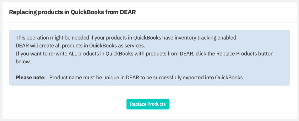 Products in QuickBooks Online were replaced successfully.