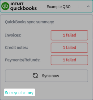 When you have synced with QuickBooks Online, you can see your sync history (both failed and successful syncs) by selecting See sync history in the QuickBooks Online navigation.