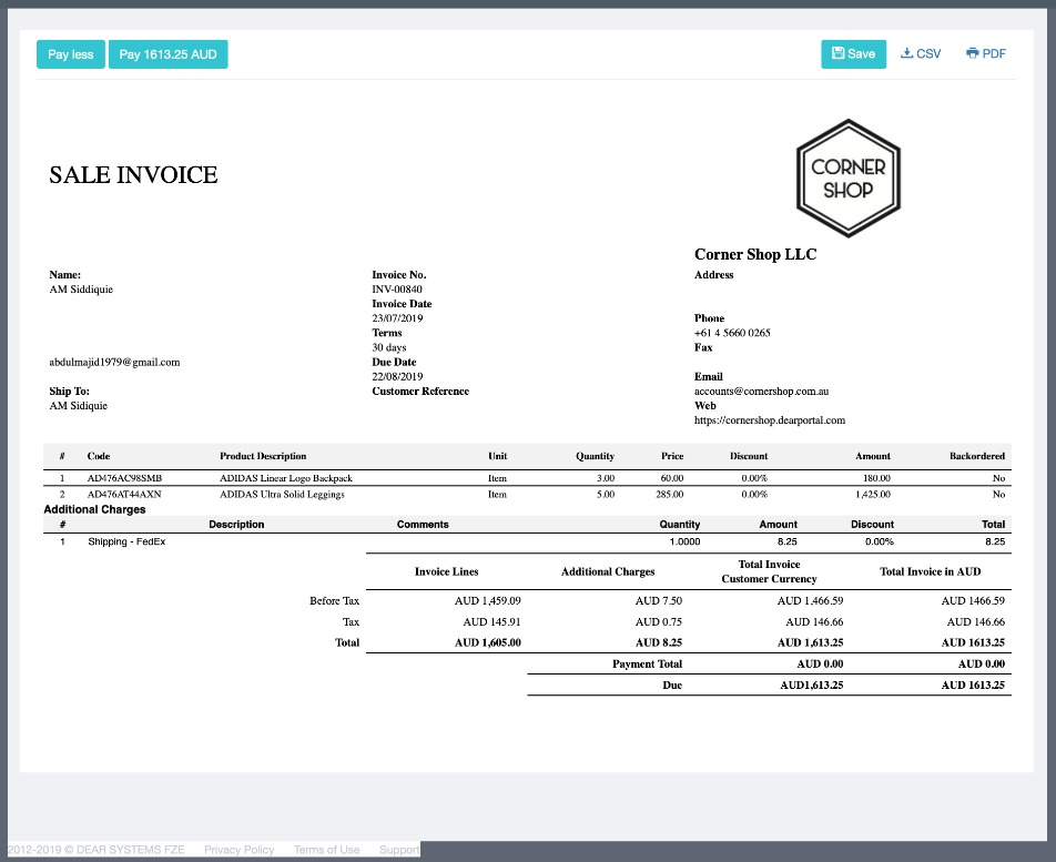 Cin7 Core generates electronic documents (PDF, email content) to enable your customers to seamlessly pay quotes and invoices. Payment documents can contain Pay Links, allowing customers to pay directly using these documents. Users of the Cin7 Core B2B Portal can also use QuickBooks Payments to process transactions.