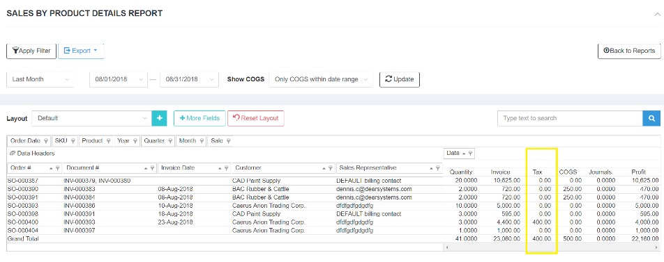 Can I see a separate column for tax on this report?