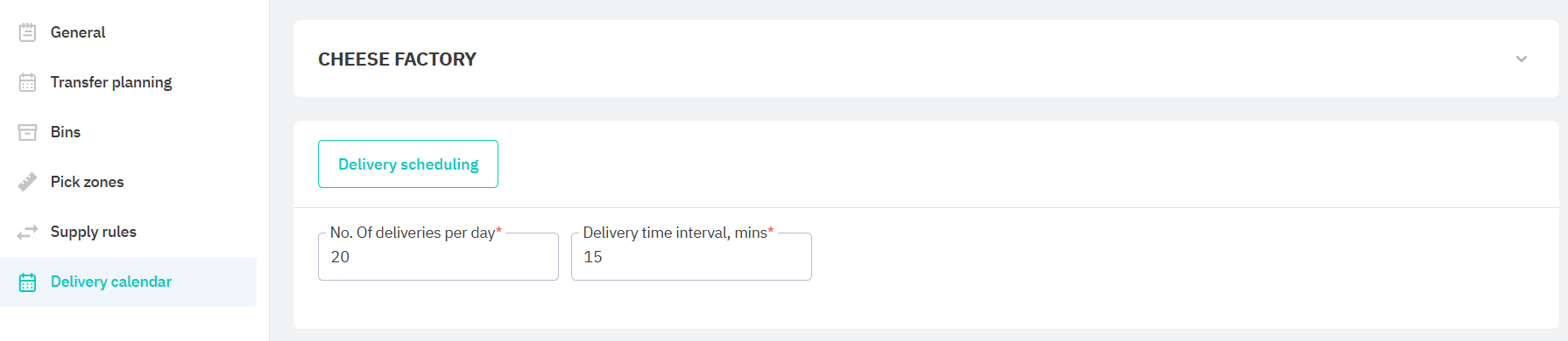 Enter the No. of deliveries per day and the Delivery time interval in minutes.
