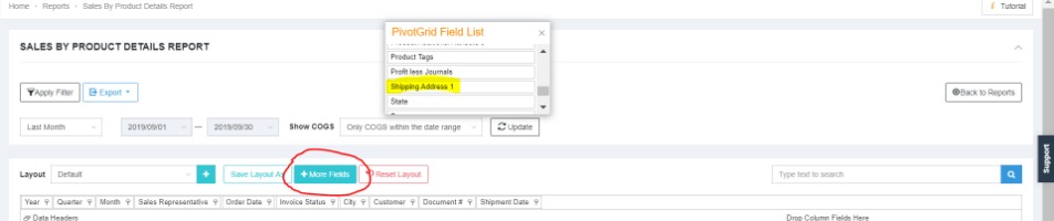 The report shows quantities, profit and additional financial summary for sales by product in a given reporting period. It shows product quantity, amount invoiced, COGS, journal amount, tax and profit. The output can be customised using product details. Use this report to view product sales by customer location (state, country, etc.).