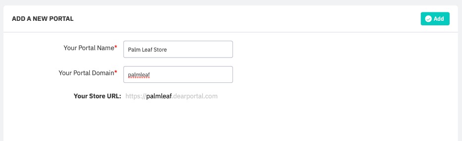 Enter a name for your portal. The name is appended as a subdomain and reflected in your store URL, which will be used by your customers to access the portal.