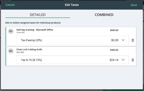 On the Edit taxes window, select the tax rule to apply from the list.