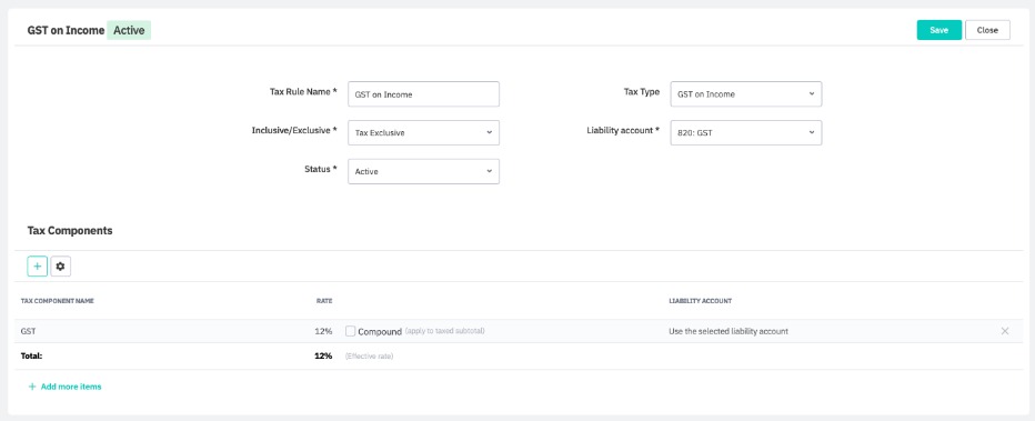To add more tax components, click the + button.