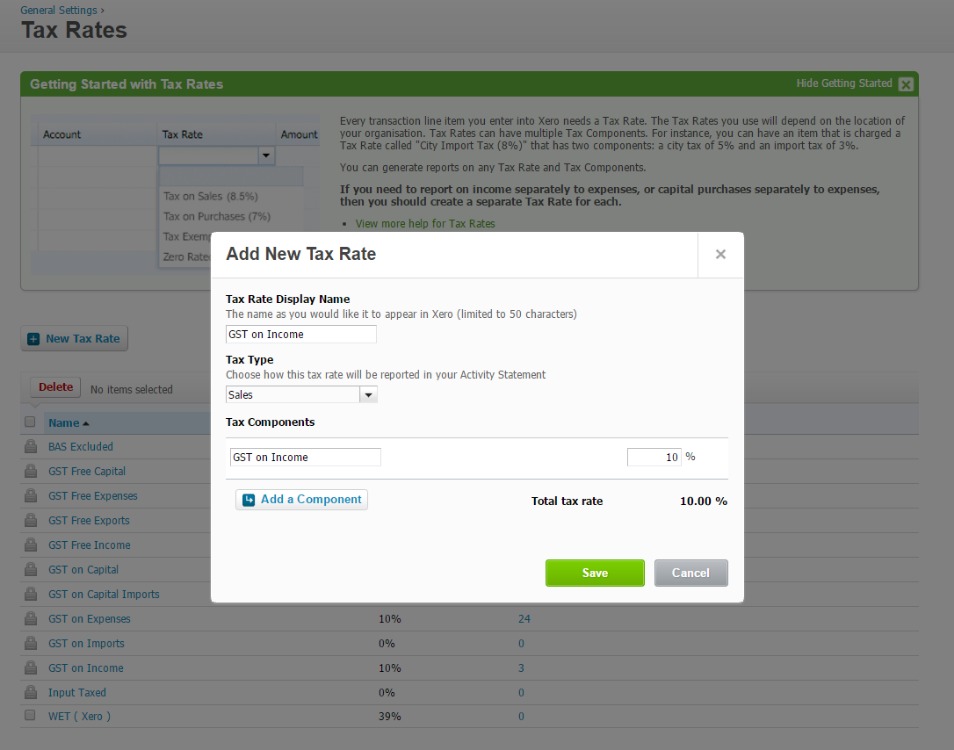 Create/edit tax rates in Xero