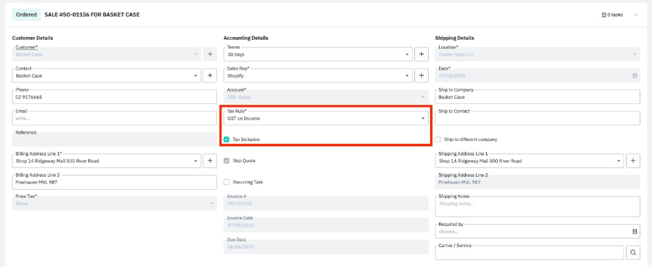 Each tax rule created will be set by default to be tax inclusive/exclusive, but this can be changed at the order level.