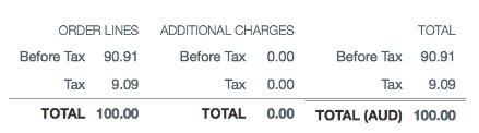 If the transaction is Tax Exclusive, the value of the order is $100. Calculated GST is 10% of $100.