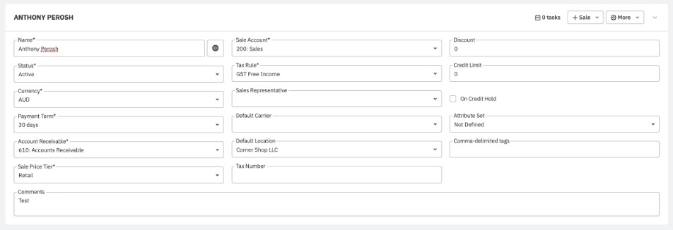 Note: If you are using Xero/QuickBooks, remember that tax rules must first be created in Xero/QuickBooks. Once a rule is created, you can add, remove or modify tax components either via Cin7 Core or via Xero/QuickBooks. The examples in this section are shown in Cin7 Core, but the process should be similar in Xero and QuickBooks Online.