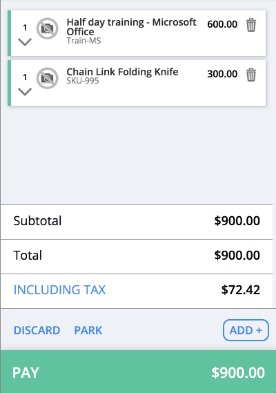 Add products to the sale through Cin7 Core POS. Tax is shown at the bottom right of the screen.