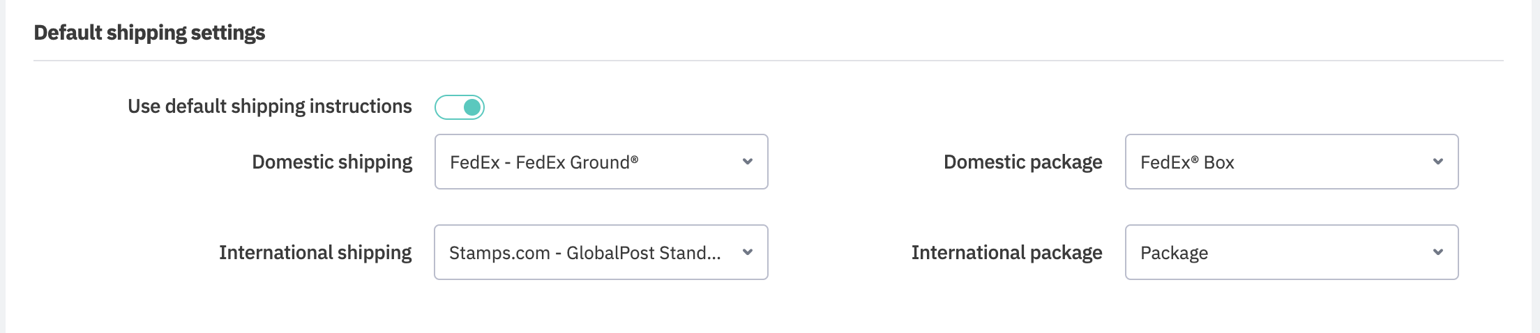 Default shipping settings allow users to pre-fill carrier, service, and package type with default values rather than making a manual selection every time. Default values can be edited manually from the sale.