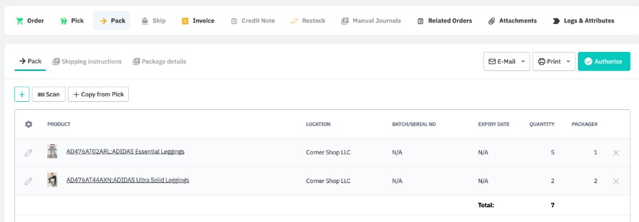 On the Ship tab, press Copy from Pack. Click Generate Shipping Label to send package information and shipping instructions to the shipping service provider and generate the shipping label and Authorizethe ship tab.