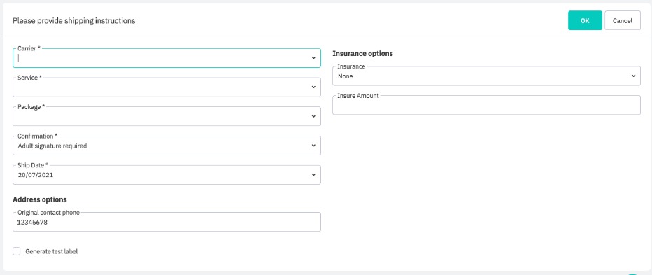 Note: ShipStation API does not support consignment consolidation but does support individual package label generation. Labels will be generated for each individual packages.