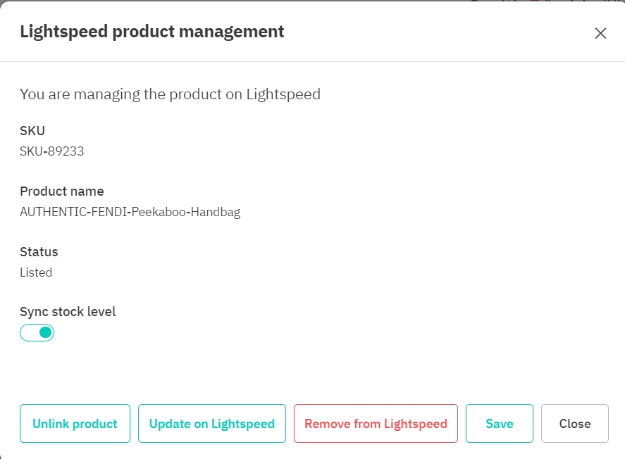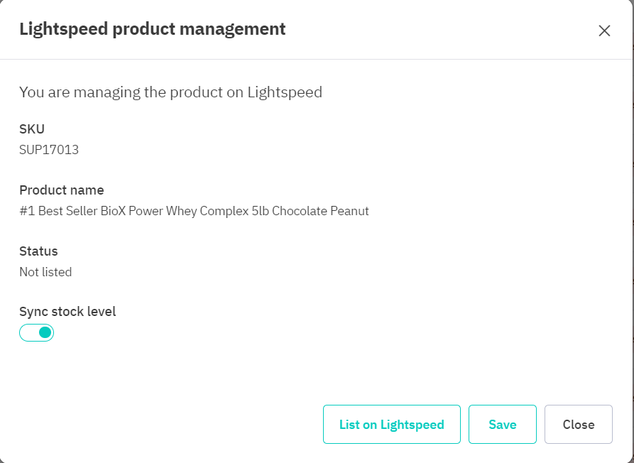 Click List on Lightspeed for an unlisted product or Update on Lightspeed for an already listed product.