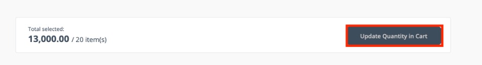 When the customer has selected all the required variants, they can scroll to the bottom of the screen to see the bulk order total, then click Update quantity in cart to add the product family variants to the shopping cart. From here the checkout process is completed as usual.