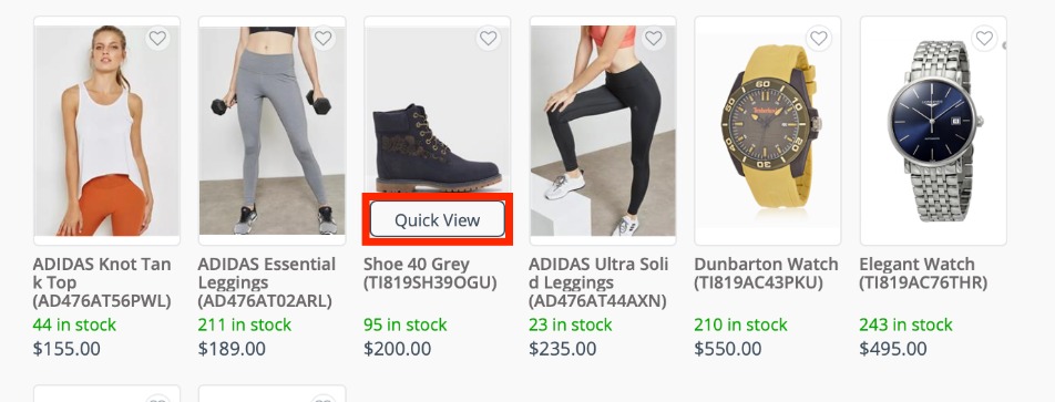 Simple products (products not in a family) can be added using the Quick View function. Simply hover over a product image and click Quick View to open a pop up window where quantity can be selected and the product can be quickly added to the shopping cart.