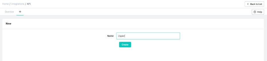 On the API Integration page, click the + icon on the top right, enter a name for the API (for easy identification, you might want to use Zapier as the API name), and click Create button to generate an API channel.