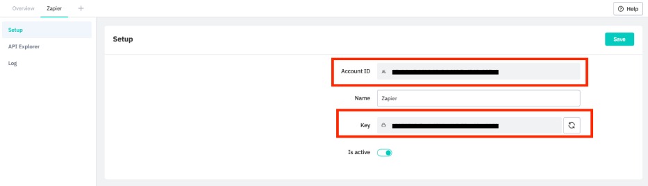 Cin7 Core then creates the API account ID and key under the Setup tab of the API Integration page. You will need both pieces of information to connect Cin7 Core to Zapier.