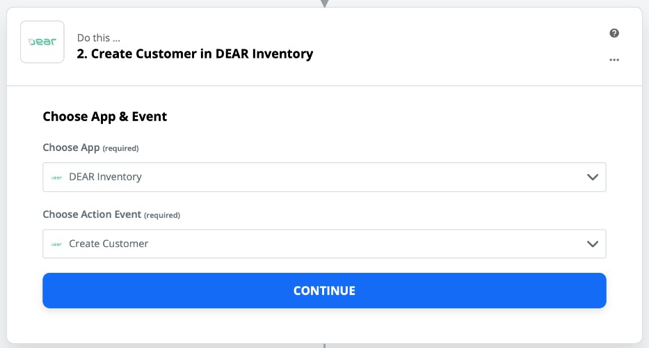 Select the type of action, then click Continue. For this example, we will select Create Customer, which will create a new customer in Cin7 Core.